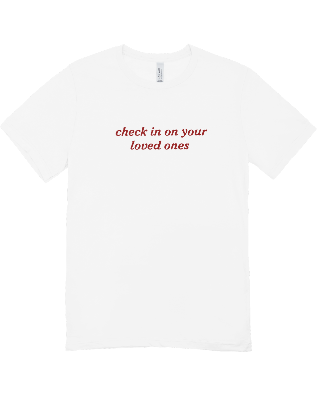 Surround yourself with good energy. Add the "Check In On Your Loved Ones" T-Shirt to your wardrobe today and wear your heart on your sleeve.