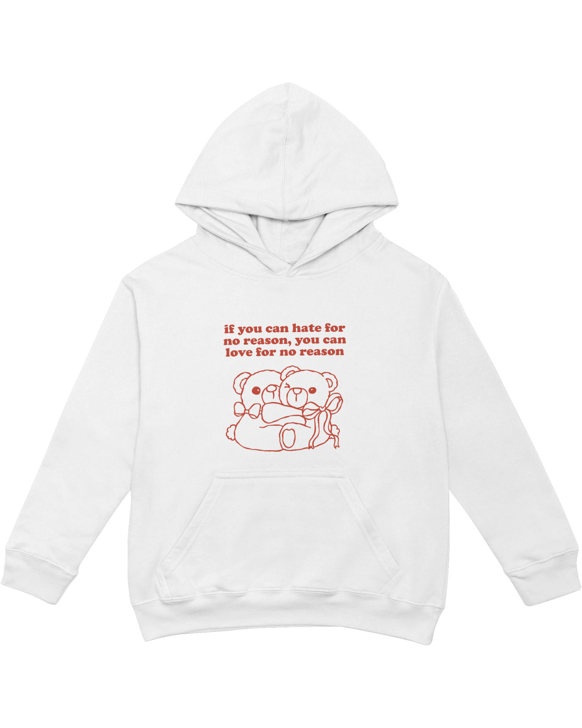 Surround yourself with good energy. Add the "If You Can Hate For No Reason, You Can Love For No Reason" Hoodie to your wardrobe today and wear your heart on your sleeve.