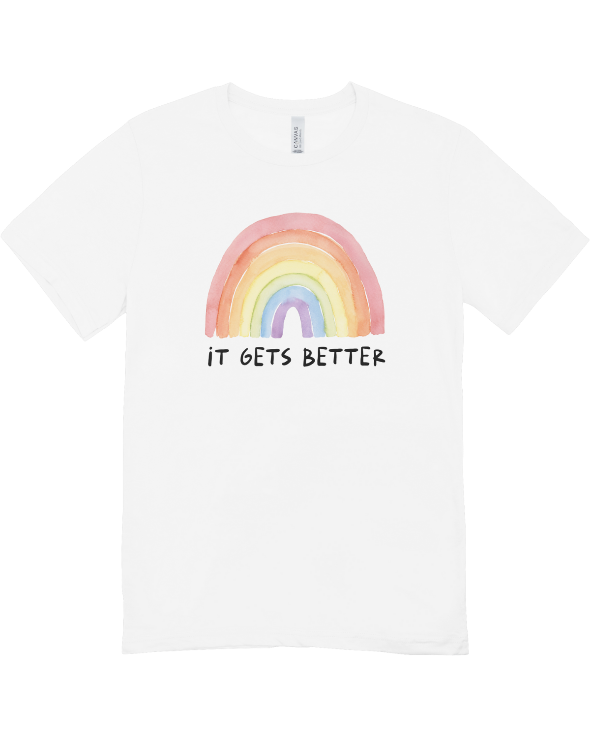 Surround yourself with good energy. Add the "It Gets Better" T-Shirt to your wardrobe today and wear your heart on your sleeve.